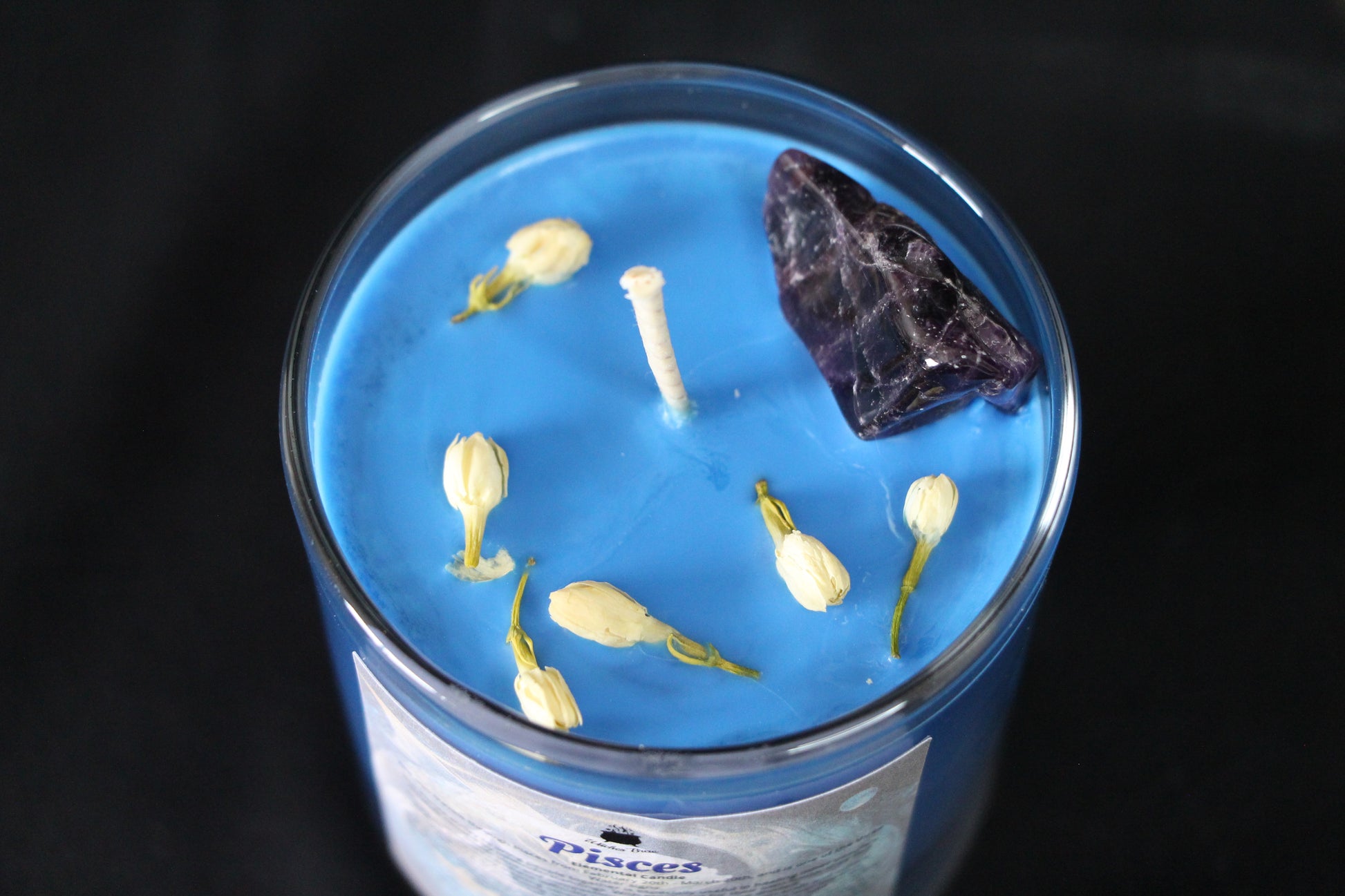 Illuminate your cosmic energy with our Crystal-Infused Zodiac Candles, each one hand-poured with intention, guided by the stars, and topped with crystals chosen for your sign.